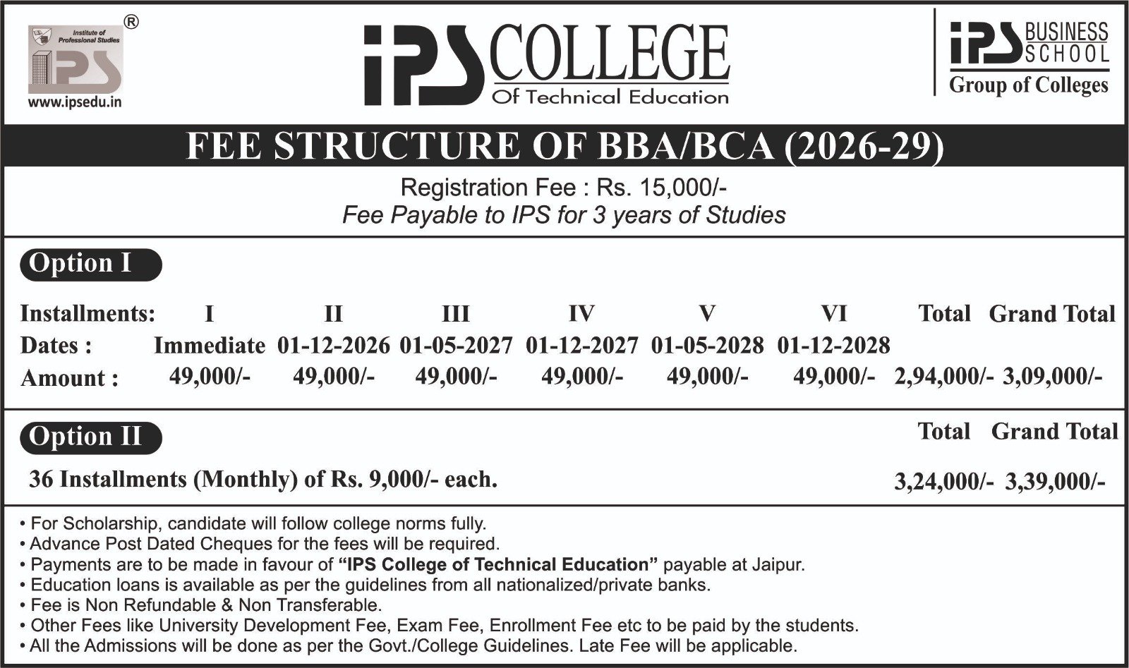 Offline : Application form can be purchased from IPS Campus on cash payment of Rs. 900/- & submit the same duly filled in with requisite documents.