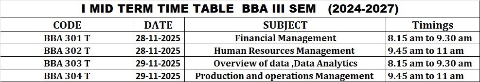I MID TERM TIME TABLE BBA III SEM (2024-2027)