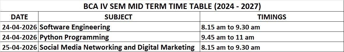 BCA IV SEM MID TERM TIME TABLE (2024 – 2027)