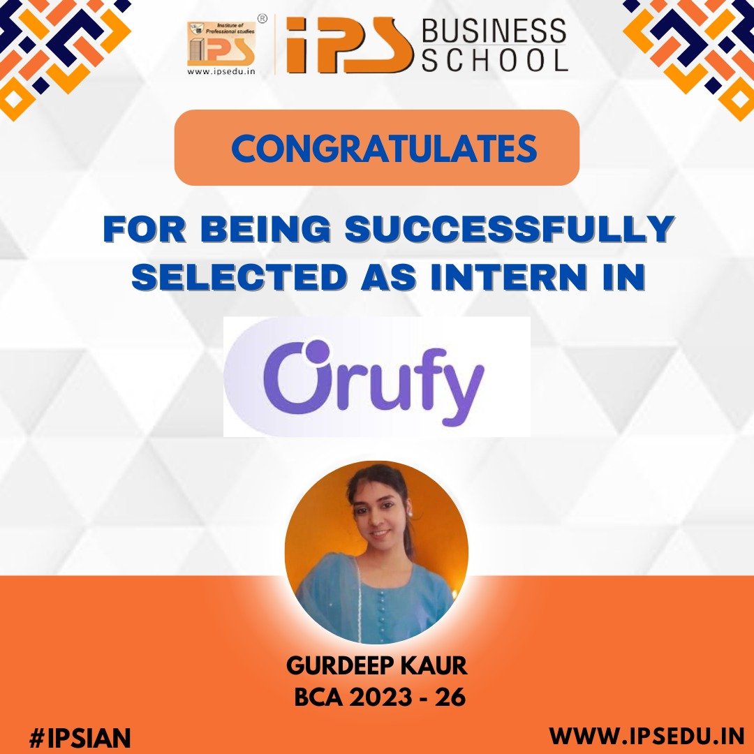In today’s fast-evolving digital world, where innovation is the heartbeat of every technological advancement, the journey from being a student to becoming an industry-ready professional is nothing short of inspiring. Among the young and dynamic learners of IPS College Jaipur, one name has recently carved a mark of pride and accomplishment — Gurdeep Kaur, a dedicated and ambitious student of the BCA (2023–2026) batch, who has secured a prestigious opportunity at Orufy Technologies Pvt. Ltd.