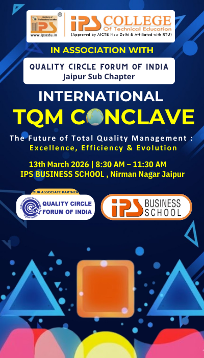 The Future of Total Quality Management : Excellence, Efficiency & Evollution The International TQM Conclave organized at Institute of Professional Studies (IPS) Business School in Jaipur represents an important academic and professional initiative aimed at promoting the principles of Total Quality Management (TQM) in modern organizations. The conclave brings together scholars, industry experts, researchers, and students to discuss the evolving role of quality management in achieving organizational excellence, operational efficiency, and sustainable development. Total Quality Management is a strategic management philosophy that focuses on continuous improvement, customer satisfaction, and the involvement of all employees in improving organizational processes. The concept gained global recognition through the pioneering work of quality experts such as W. Edwards Deming, Joseph M. Juran, and Philip B. Crosby. Their ideas transformed the way organizations approach quality, shifting the focus from inspection and correction to prevention and continuous improvement. This year's Zephyr will be held on December 5th , 6th , 7th , and promises to be an exciting event with a variety of events and activities. The fest will feature a wide range of events, including dance and singing competitions, a fashion show, and coding competitions. These events will provide our students with the opportunity to showcase their talents and compete against their peers in a fun and supportive environment.