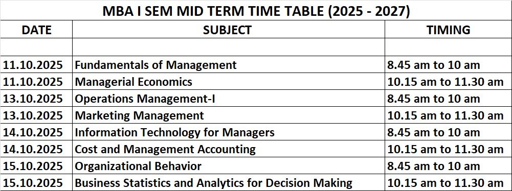 • MBA 1st Sem MID TERM Time Table ( 2025 – 27 )