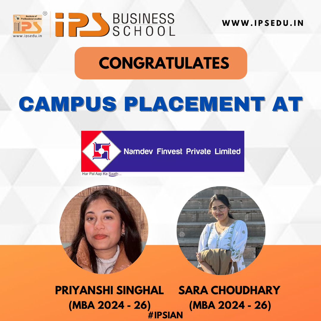 Success is not just a destination—it is a journey marked by dedication, perseverance, and the courage to chase one’s dreams. Today, we take immense pride in celebrating a remarkable achievement that reflects all these qualities. It is a moment of honor and joy to announce the successful placement of our talented students, Priyanshi Singhal (HR) and Sara Choudhary, at Namdev Finvest Pvt. Ltd.